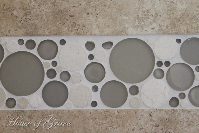 There were a lot of problems with the tile installation. (You can see all the blue tape- that means all those tiles were bad.) Anyway, my MIL had to have the whole floor re-done. It was a huge problem! I will show you more pics when I go back.