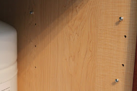 The first thing that I did was line the bottom of the cabinet with a white liner. I think that it looks clean and new plus it hides the water marks!